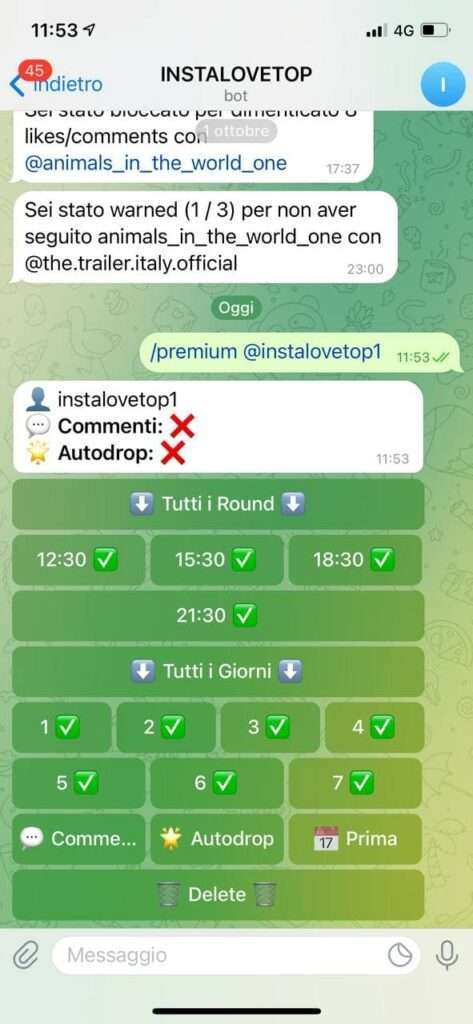 During this phase the bot will carry out its checks, verifying that the participating users have correctly retrieved the other photos with Likes and / or Comments (depending on the selection).
