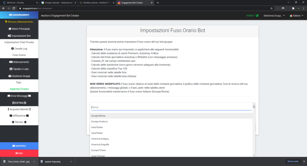 From the Webpanel, you can now decide a custom Timezone for the Bot (that will be standard for all your groups) and for each group, if you for example decide to have different groups for different countries.