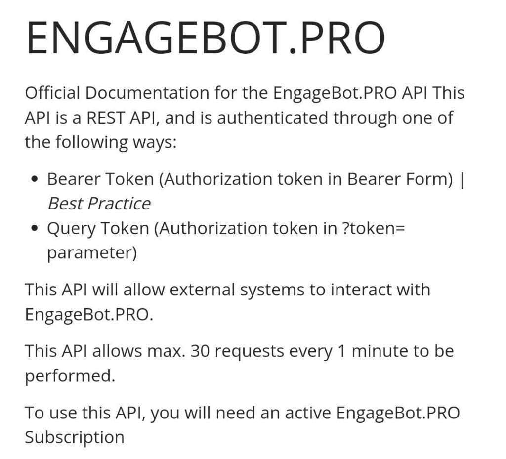 Come già citato in precedenza, il sistema è integrato all’interno dell’ecosistema EngageBot.PRO attraverso le sue API UFFICIALI.