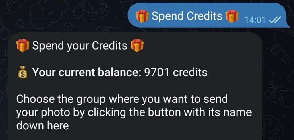 Nel caso specifico di questo bot, l’utente può spendere i propri punti per pubblicare una foto premium all’interno di uno dei gruppi, senza quindi dover recuperare, in maniera totalmente automatica!