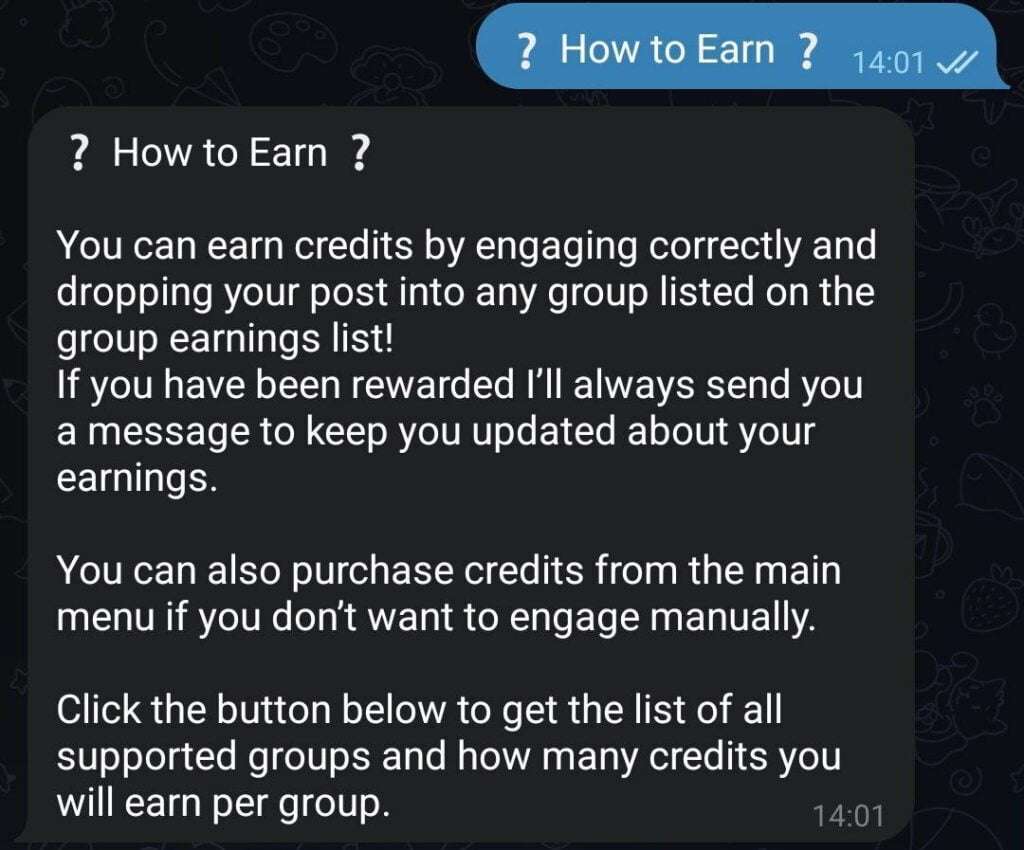 L’Amministratore del Bot può impostare per ciascun gruppo un Importo Guadagnato in punti per ciascun post pubblicato all’interno di quel gruppo, e da quel momento in poi ciascun utente che pubblicherà all’interno di uno dei gruppi registrati riceverà l’importo in punti corrispondente all’interno del bot (anche se non lo ha mai avviato prima!)